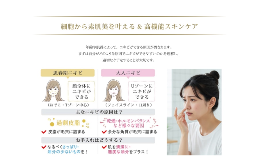 繰り返す肌荒れやニキビの連鎖を断ち切るために、多角的なアプローチを実現しました。