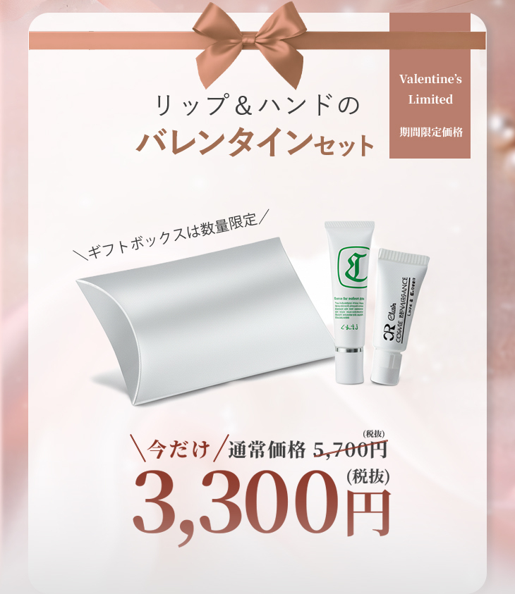バレンタイン限定|唇と手元のうるおいケアセット 乾燥から守るリップグロスとネイル&ハンドの実用ケアセットが今だけ特別価格で登場男性向けギフトにも自分用にもおすすめです。